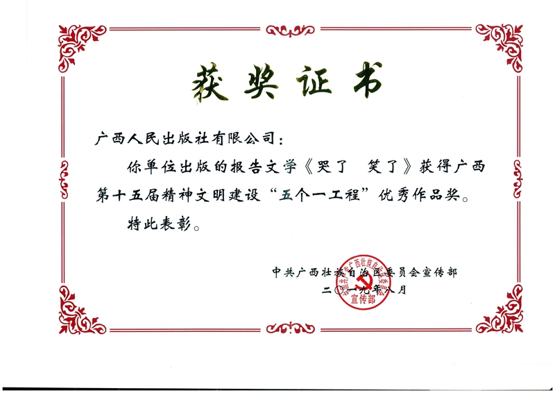 《哭了 笑了》丛书广西第十五届精神文明建设“五个一”优秀作品奖