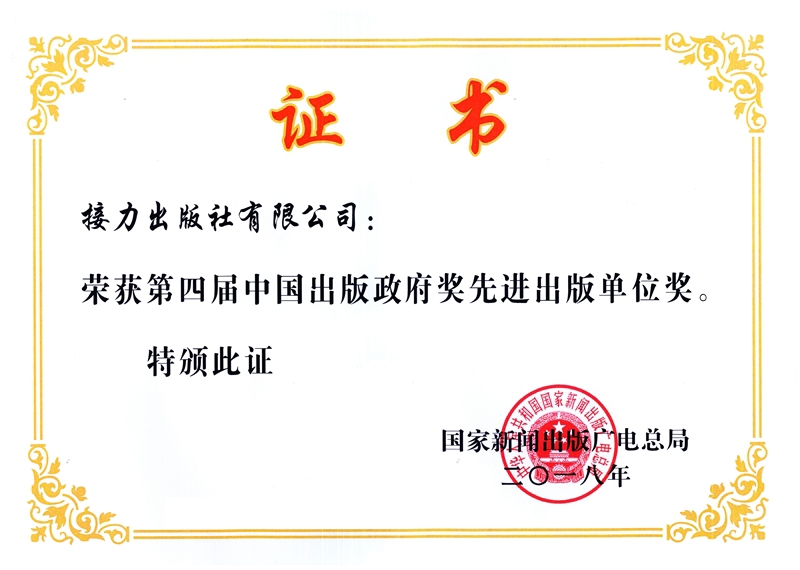 2018年第四届中国出版政府奖先进出版单位奖-接力出版社
